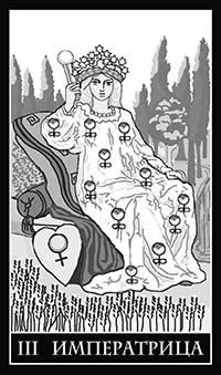 В мировых религиях существует множество троиц. Величайшая из них – мать, отец и дитя. Это и христианская Троица, индуистская Тримурти. Это греческие мойры, норны, парки. Три фазы Луны – три стадии жизни женщины. В ряду Старших Арканов есть три карты, связанные с женским началом и соответствующие возрастам Тройной Богини – Жрица для Девы, Императрица – для Матери и Луна – для Старухи. Каждая из них на самом деле обладает всеми тремя женскими качествами, но одно из них акцентируется. Императрица – воплощение Земли, символ неиссякаемой силы, с помощью которой природа постоянно творит новую жизнь. Это олицетворение процесса созидания формы, где бесформенная идея становится объектом физического воплощения.
