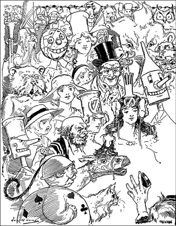 Из распахнутых дверей до него донеслись взрывы веселого смеха и шум застолья. Озма, прекрасная юная правительница страны Оз, устраивала вечеринку, и в зале было полно самых удивительных созданий. Многим они могли бы показаться весьма странными, но большинство читателей, уже знакомых со страной Оз, сталкивались с ними не впервые.