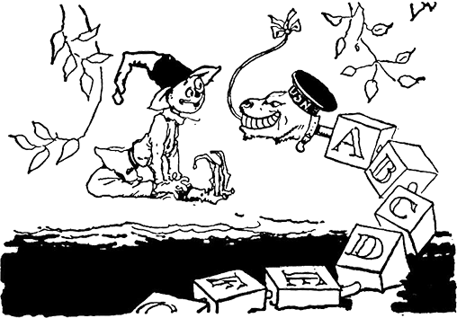 Услыхав это, Пугало попытался придумать, что бы еще такое сказать. Однако (как он потом рассказывал Дороти) вид этой парочки был настолько поразительным, что он буквально онемел от удивления. Более крупный был длиной не менее двухсот футов, и он полностью состоял из деревянных кубиков. На каждом виднелась своя буква азбуки. Голова этого существа представляла собой большой квадратный брусок, напоминавший по форме голову змеи; а язык у него был очень длинный и закрученный, словно рулетка. Второй был намного меньше. Казалось, он состоял из сотен погремушек: деревянных, пластиковых и резиновых. Все они были скреплены вместе проволокой. Когда он двигался, эти погремушки начинали трещать и звенеть. Впрочем, морда у этого создания была отнюдь не противной. Это немного приободрило Пугалу. Он воспрянул духом и отвесил незнакомцам глубокий поклон.