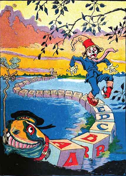 Перестав ворчать, Азбучный Морской Змей выполз из воды и, помахав Пугале на прощание своими кубиками X Y Z, он загрохотал по дороге. Погремучник загрохотал вслед за ним.
