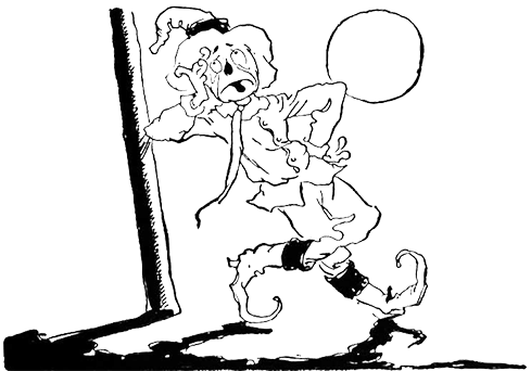 Кувыркун с удивлением увидел, как Тыквоголовый Джек, крепко держась за свою большую голову, удирал во все лопатки от Дороти. Быстрее двигаться ему просто не позволяли его шаткие деревянные ноги. Игра в жмурки была в самом разгаре. Лоскутка, Тик-так, Пугало, Железный Дровосек, Хрустальная кошка, Трусливый Лев, а также Волшебник страны Оз вместе с Козлами, капитаном Биллом, Бетси Боббинс, курицей Биллиной и Голодным Тигром, убегали, толкаясь и налетая друг на друга, от девочки с завязанными глазами.