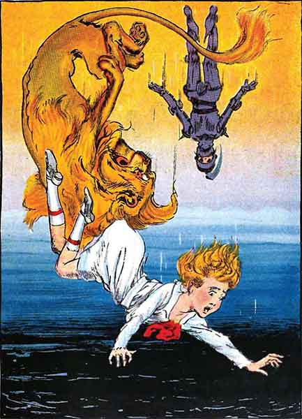 – Не бойся, я его выловлю, – отрывисто рыкнул Трусливый Лев и, даже не отдышавшись, бросился в реку.