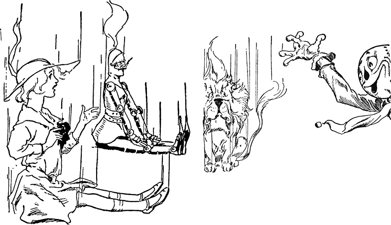 – Он славный малый, – прошептал Трусливый Лев в нарисованное ухо Пугалы, – хотя частенько несет всякую чепуху.