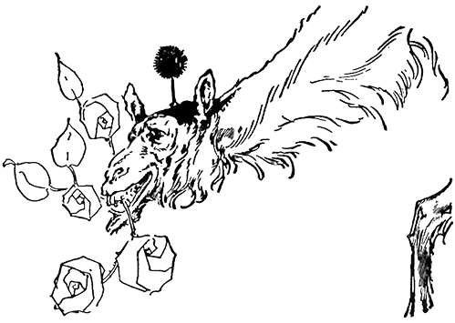 Когда сэр Рыцарь мельком увидал, кто следовал за Волшебником, он перепрыгнул через Беспечного Верблюда.