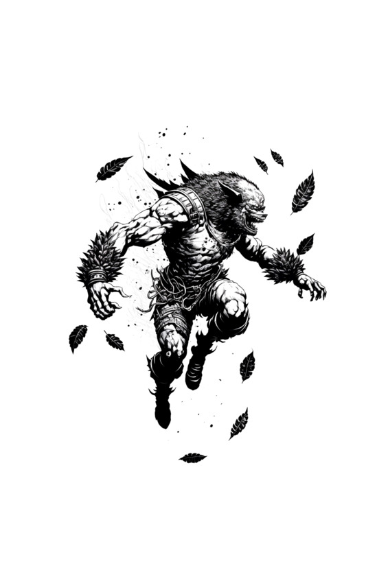 А у двух монахов-комусо такой защиты не было, поэтому бесы уже полностью ими овладели. Вселившись в монахов, оборотни начали менять форму. На руках у них выступили длинные когти, а рты наполнились остроконечными зубами. Шерсть появилась на бритых головах, а уши вытянулись вверх. Кожа одного из монахов позеленела, а второй стал синим, как тунец, и покрылся пятнами. На монахов они стали совсем непохожи; теперь они напоминали собой диких зверей.