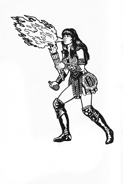 Человек в сандалиях молча плюнул через плечо в ее сторону. Воительница ловко увернулась и с холодной усмешкой проделала с ним один из любимых приемов. Бедняга вверх тормашками пролетел несколько шагов и со стоном плюхнулся на каменный пол. Оставшиеся трое, застыв от ужаса, смотрели то на Зену, то на ее жертву. Через минуту скамья была свободна.