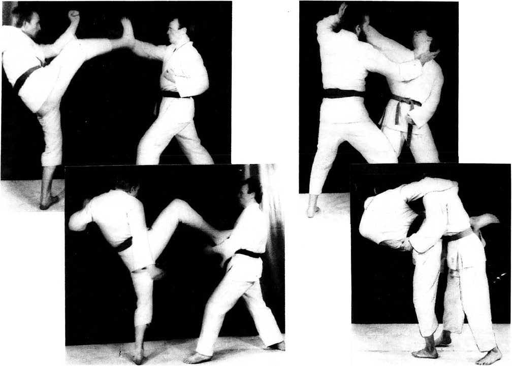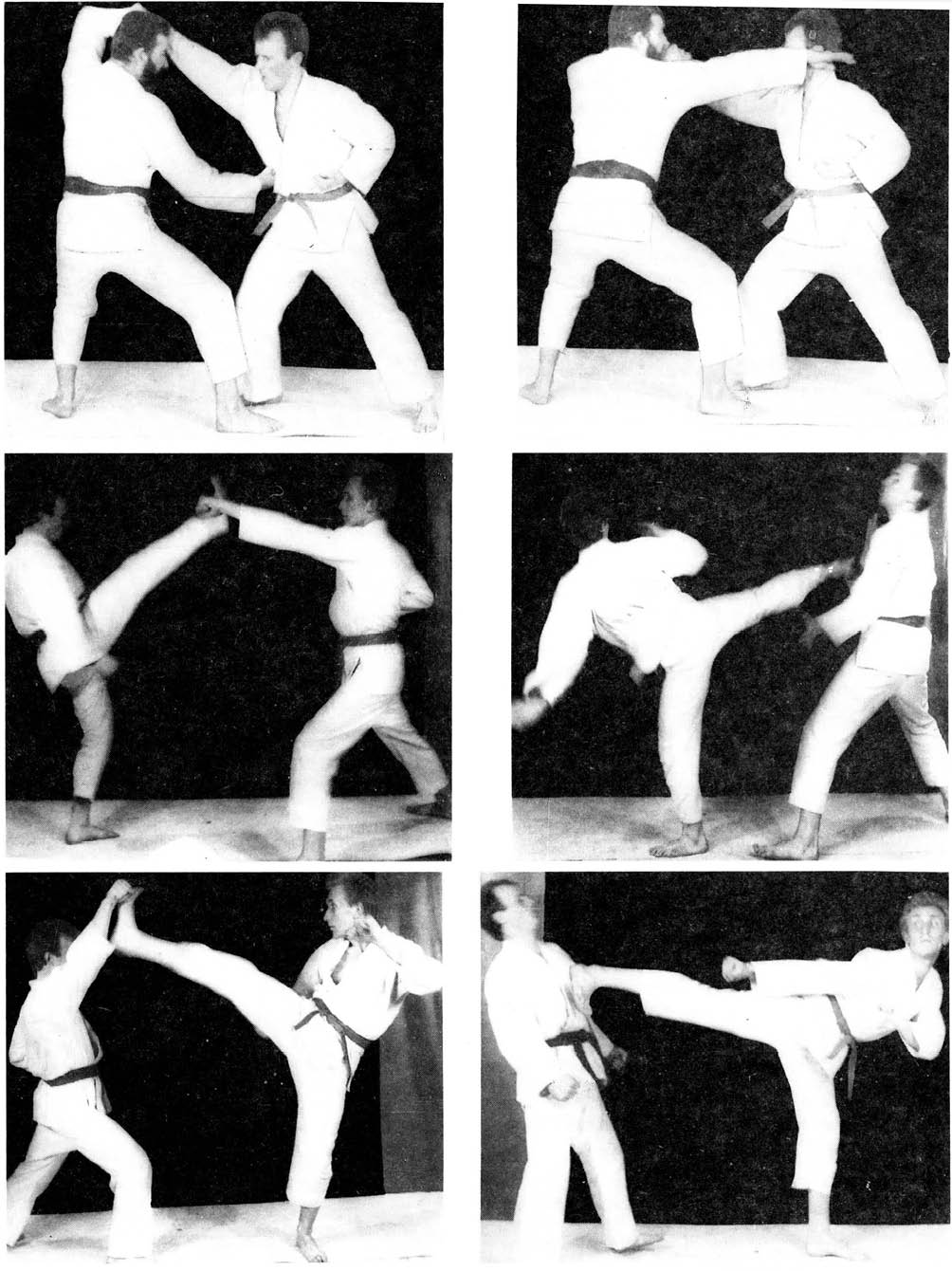 Как уже отмечалось в первом томе настоящего пособия, правильно выбранные формы тренировок позволят вам не только развить поразительную быстроту легкосменяемых друг друга блоков и ударов, но и выработают умение мгновенно перемещать центр тяжести вашего тела. В комбинациях очень важно всегда сохранять равновесие, действовать быстро, мягко, не давая противнику пауз и лазеек для контратаки, с тем, чтобы серией ударов пробить защиту противника, вызвать в ней брешь, позволяющую провести решающий удар.