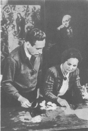 Павел Дмитриевич и Прасковья Тихоновна Корины в реставрационной мастерской