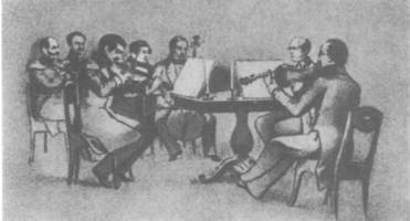 Именно Семевскому мы обязаны подробным – и единственным! – описанием этого истинного памятника на-дио нальной культуры. В фамильном альбоме находились Живописные и акварельные работы прекрасного художник а П. Ф. Соколова. Среди них портреты знаменитых его современников и знакомых: В. А. Жуковского, К. П. Брюллова, И. А. Крылова, братьев Антона и Николая Рубинштейнов, писанных в их юности – в 1844 г.; ком позитора скрипача А. Ф. Львова, виолончелистов Ж. Серве и Б. Ромберга. Еще множество гравированных изображений европейских и русских светил с их собственноручными автографами: Л. Бетховена, Ф. Листа,