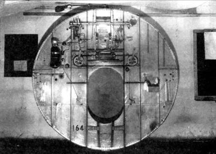 Еще одно учебное пособие – перегородка бомбоотсека, люк овальной формы предназначен для перемещения членов экипажа вдоль самолета.