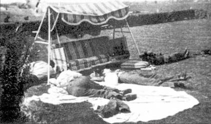 Перерыв между боями. Летчики 65-й эскадрильи пользуются 30-минутной паузой, необходимой для заправки самолетов и пополнения боекомплекта для короткого сна, Рочфорд, август 1940 г.