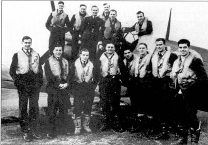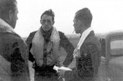 Летчики 41-й эскадрильи, ноябрь 1940 г. На снимке запечатлены асы: флайт– лейтенант И. Райдер, второй слева в первом ряду; скуадрон-лидер Д. Финлей, в первом ряду в центре; пайлот-офицерДж. Маккензи, непосредственно за Филеем; слева от Маккензи – флэг-офицер Т. Лоуэлл.