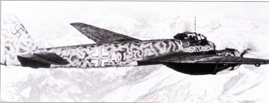 Ju-88A-4 из KG-76 в полете над Альпами, начало 1944 г. Самолет направляется во Францию, где концентрируется авиация люфтваффе, чтобы принять участие в своей последней крупной бомбардировочной операции – «Штейнбок».