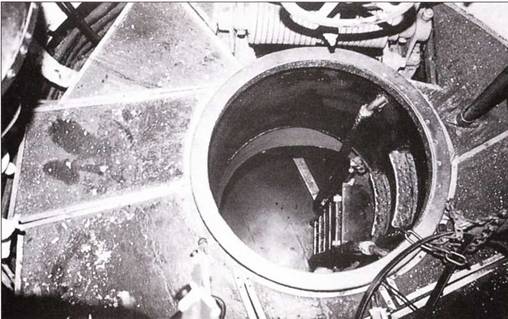 Вид из рубки через люк центрального отсека диаметром 600 мм и стальную лестницу в трубе для быстрого спуска в лодку в случае сигнала тревоги. Пол мостика покрыт деревянными плитами. Комингс обшит металлической шиной, к которой крепилось резиновое уплотнение крышки центрального люка.