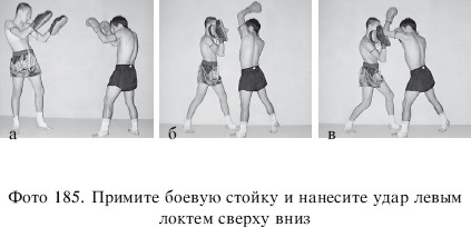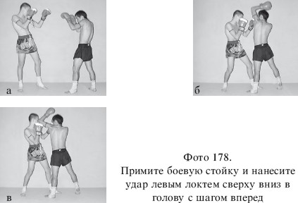 Тактическое назначение: Атака ударом левым локтем сверху вниз в голову с шагом вперед.