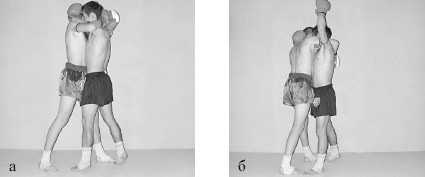 Самой эффективной защитой от ударов локтями сверху вниз является защита подставкой предплечий.