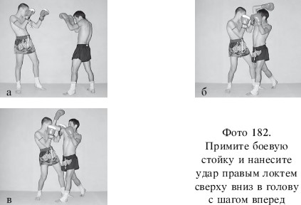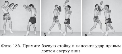 Тактическое назначение: Атака ударом правым локтем сверху вниз в голову с шагом вперед.