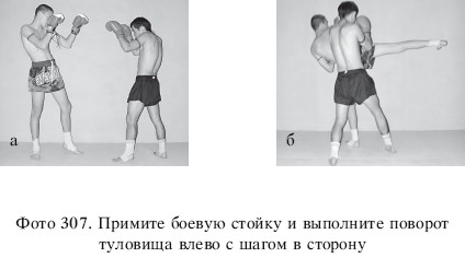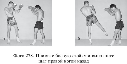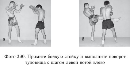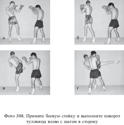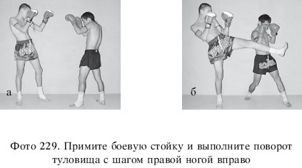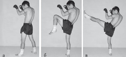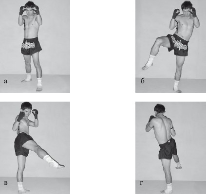 Техника выполнения: примите боевую стойку. Вес тела перенесите на левую ногу. Одновременно поднимите вверх-вперед бедро правой ноги, разверните туловище и стопу левой ноги на 90 градусов.