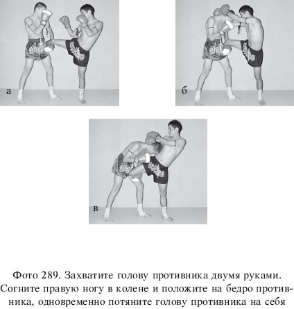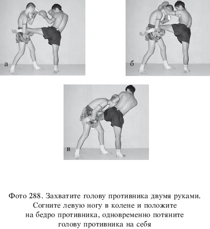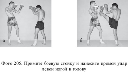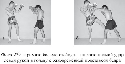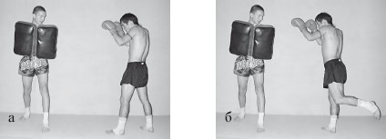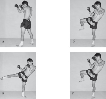 Техника выполнения: примите боевую стойку. Перенесите вес тела на правую ногу, одновременно поднимая вверх бедро левой ноги к локтю левой руки и направляя голень левой ноги вперед.