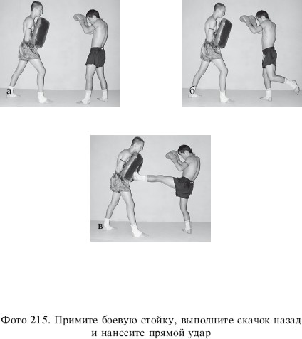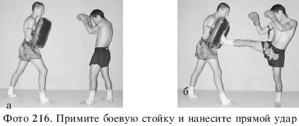 Техника выполнения: примите боевую стойку. Перенесите вес на левую ногу, одновременно поднимая правую ногу и направляя стопу правой ноги вперед. Руки приподняты для страховки от возможных встречных или ответных действий.