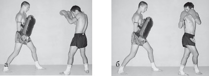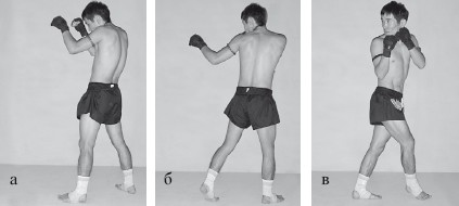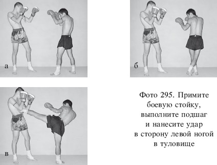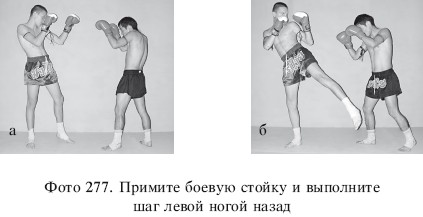 Техника выполнения: примите боевую стойку. Перенесите вес на правую ногу, одновременно поднимая левую ногу и направляя стопу левой ноги вперед. Руки приподняты для страховки от возможных встречных или ответных действий.