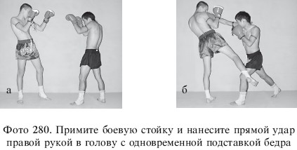 Защита прямым ударом правой рукой в голову с подставкой бедра