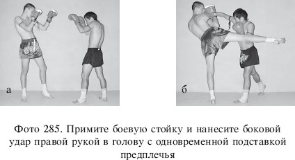 Защита боковым ударом правой рукой в голову с подставкой предплечья