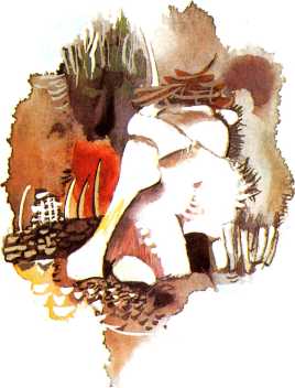 Мануш не обращала никакого внимания на речи Людоеда. Она была сильно голодна и потому подошла к очагу и подбросила хворосту, чтобы огонь скорее разгорелся.