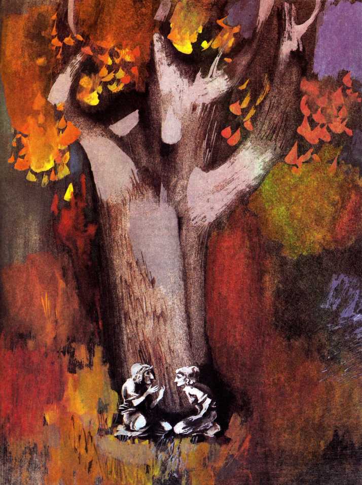 Не спокойны были и колдуньи. Прячась за орешиной, они, не спуская глаз с дома Людоеда, ждали… Ждали с уверенностью, что стоит Дандалошу съесть Мануш, как они тотчас обретут свою колдовскую силу.