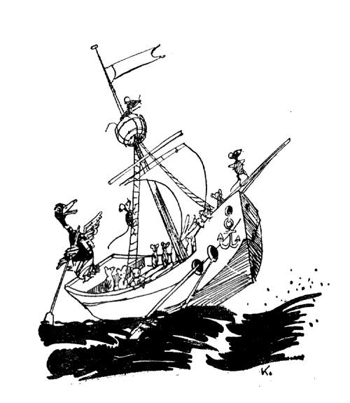 Ведет кораблик утка,