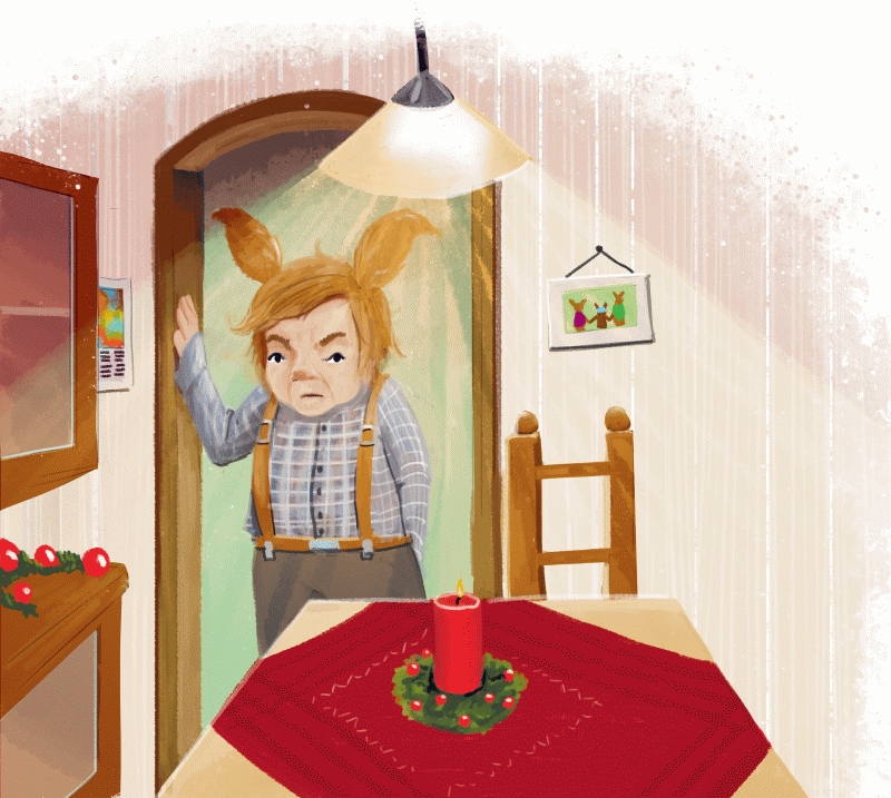 Любуясь этими чудесными украшениями, Шустрик то и дело напевал, бегая между родительским домом, Кузницей и лечебницей. Так как ему часто приходилось тащить свою ручную тележку к кладовой, чтобы выпросить немного еды для зверей, он нередко проходил мимо стоящего рядом дома Кнута. Оттуда всегда доносились соблазнительные ароматы фруктовых пирожных, медового печенья и жареных грецких орехов. Видимо, все эти угощения жена Кнута Аннегрет готовила к большому праздничному пиру. В то время как Эльза с другими помощниками продолжала каждый день печь хлеб и булочки в пекарне, Аннегрет возилась с рождественскими лакомствами у себя дома.