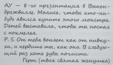 – Пшли, пшли, пшли! – прошипела она, засунув кулаки под мышки, – локти предстали кончиками бесперых крыльев. – Явились сюда и даже по доскам не прогулялись. Трусы – я так и знала!