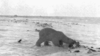 Как уже говорилось, даже медведица при появлении человека у ее убежища не проявляет агрессивных намерений. На острове Врангеля находились такие смельчаки, которые заползали в жилые берлоги (правда, с револьвером в руке) и выходили из них невредимыми. Достоверен рассказ о том, как безоружный лыжник, спускаясь с крутого склона, провалился в берлогу. Прямо перед ним, прижимаясь к стене жилища, полусидела крупная медведица; слышалось шипение разгневанного зверя, теплое дыхание его человек ощущал на своем лице. Лыжник, конечно, натерпелся страха, но выбрался из берлоги, не получив никаких повреждений. Можно вспомнить и о таком происшествии. Эскимос с чукотского берега был унесен на льдине в море и провел в вынужденном плавании много дней. Патроны у него кончились, и винтовка превратилась в бесполезный груз. Однажды, когда человек уснул, на льдине появился большой медведь. Первое время соседи смотрели друг на друга с недоверием, но затем оба успокоились. Зверь в этой истории показал себя с гораздо более привлекательной стороны. Пока он спал, эскимос из ножа и винтовки соорудил копье и заколол им медведя, обеспечив себя мясом до конца путешествия, окончившегося благополучно.