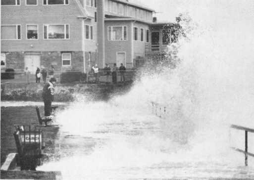 A wave crashing onto Gloucester’s Stacy Boulevard during the storm of October, 1991.