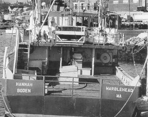 The Andrea Gail’s sister ship, the Hannah Boden, in harbor (not rigged for swordfishing).