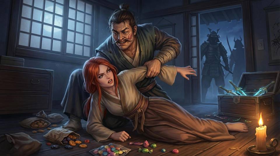 – Да не воровала я ничего! Кинжалы подарили, и сухофрукты тоже! А кимоно я заслужила!