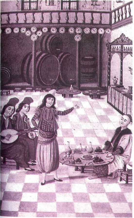 Танец для клиента в таверне. Миниатюра из «Хубаннаме»