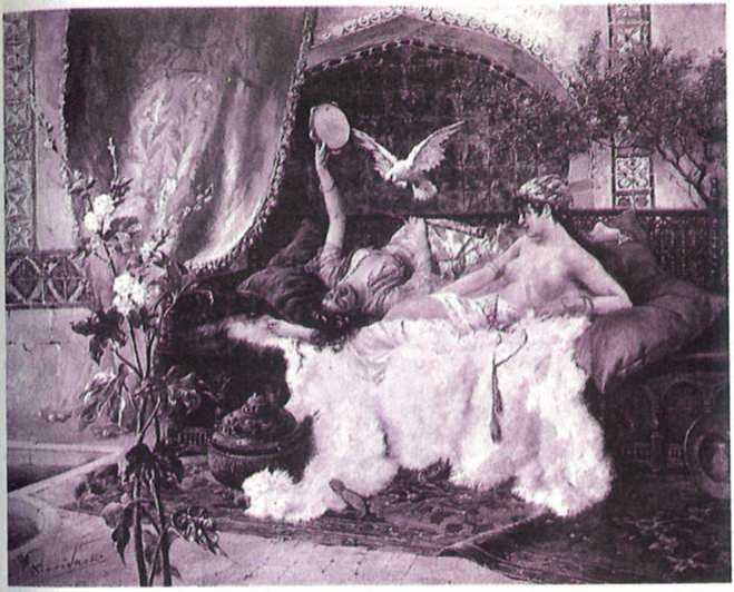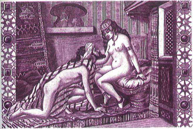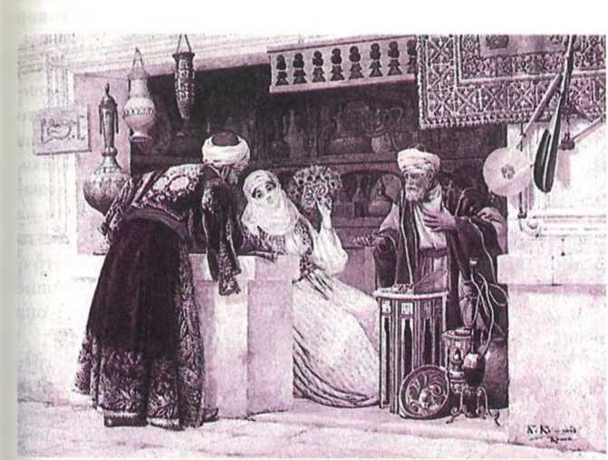 …Когда она вбежала в дом, любовники услышали это и разъединились. Жена обнаружила рабыню будто бы без чувств, и мужа – в молитве. Не поверив своим глазам, она приподняла полы мужнего халата и все поняла…
