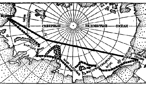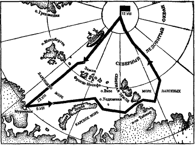 Рис. 7. Путь «Арктики» к Северному полюсу.