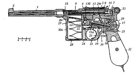 Рис. 40 Разрез пистолета «Маузер» К-96: