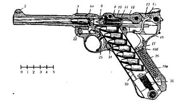 Рис. 43 Разрез пистолета «Парабеллум»: