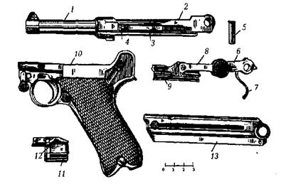 Рис. 44 Неполная разборка пистолета Р.08 «Парабеллум»: