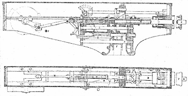 Схема устройства первого пулемета («автоматической картечницы») Максима