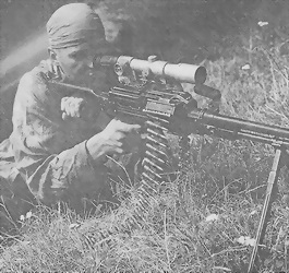 Пулемет ПКМ на сошке, с оптическим прицелом 1П21