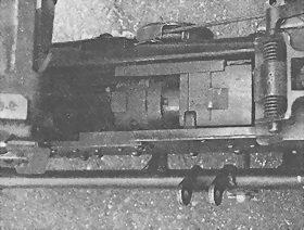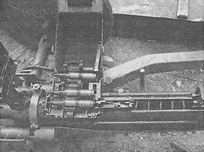 Разобрать крышку приемника, для чего: вывести специальной отверткой концы пружины рычага подачи, сдвинуть фиксатор, выбить штифты переднего прижима звена, повернуть ось щитка вправо и отделить ее на себя, снять щиток, затем легкими ударами молотка сдвинуть передний прижим вперед и отделить его вместе с рычагами.