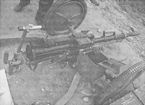 14,5-мм пулемет Владимирова (выпуска после 1956 г.), установленный на колесный станок Харыкина. Оптический прицел установлен для полигонных стрельб