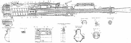 Разрез пулемета КПВ (изготовления после 1956 г.), отдельно показаны отличия узлов пулеметов изготовления до 1956 г.