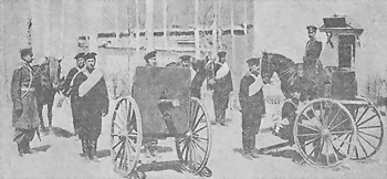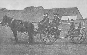 «Ездящий» пулемет «Максим» на полевом колесном лафете с пароконной запряжкой и хозяйственной двуколкой в качестве передка