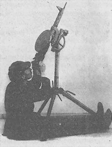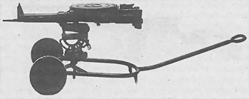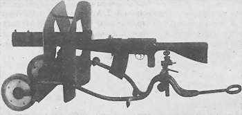 Опытный станковый пулемет на основе ручного пулемета Федорова с воздушным охлаждением ствола и дисковым магазином на треножном станке с зенитной стойкой