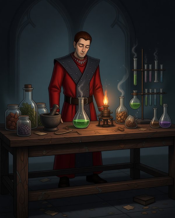 Воздух в лаборатории замка в долине рудников был густым и едким, пахнущим дымом, кипящими травами и горькой пылью распылённых алхимических компонентов. Мильтен стирал со лба пот, оставляя грязный размазанный след. Его глаза горели от недосыпа и испарений различных органических кислот, а пальцы, исцарапанные и местами обожжённые, с трудом повиновались ему. Последние дни слились в один бесконечный, изматывающий кошмар. Даже правила техники безопасности на этом фоне отступали на второй план. Он уже нарушил практически все писаные и неписаные правила, начиная с того, что нельзя работать при таком сильном утомлении. Иногда его глаза попросту закрывались, и он отключался на несколько секунд, а может, даже минут, стоя облокотившись на стол.
